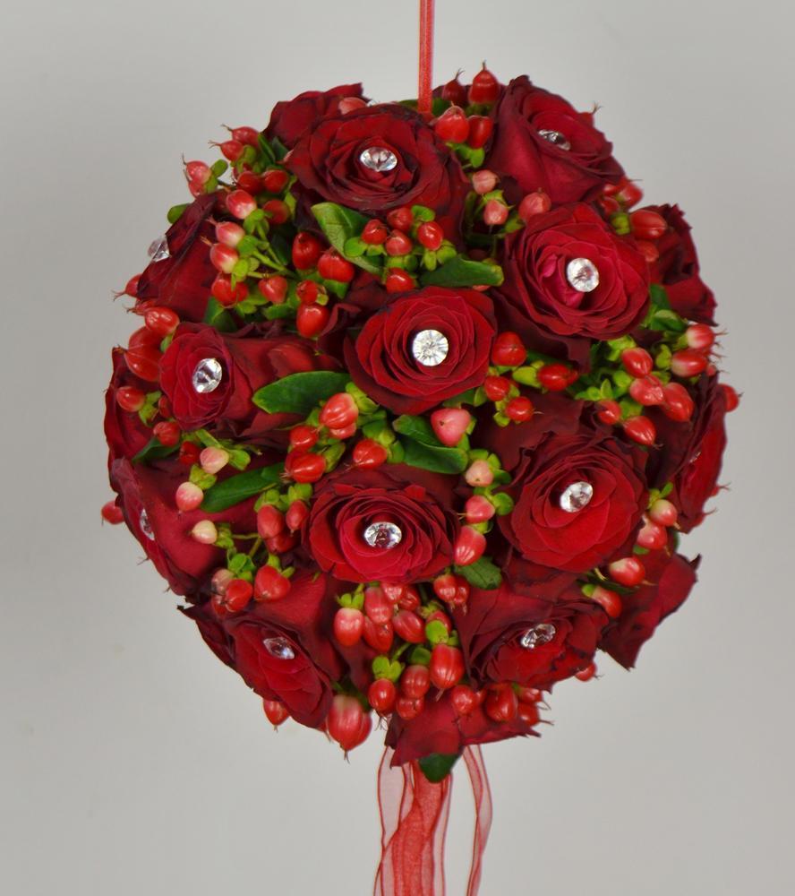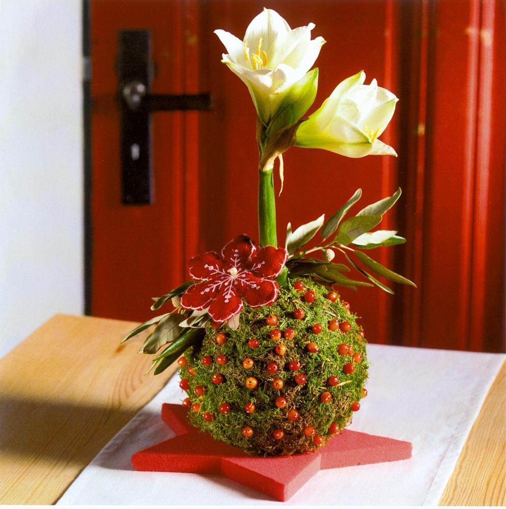 Aranžovací hmota na živé květiny ve tvaru koule.