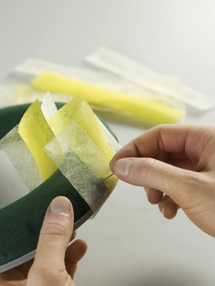 Věnec s pěnovou podložkou vhodný pro menší dekorace. Vnější Ø 25 cm, vnitřní Ø 15 cm. Prodejní balení ve folii s obrázkem.